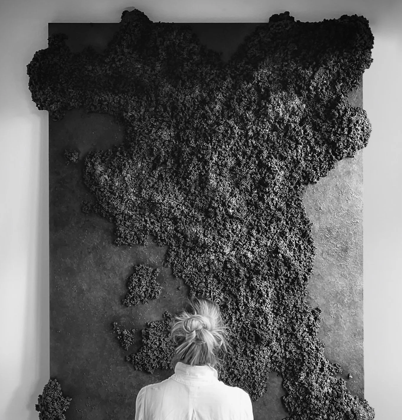 By focusing on the tactile and experimental qualities of waste materials, the work calls attention to the ongoing search for new meanings and forms, while drawing inspiration from the quiet, regenerative power of nature."